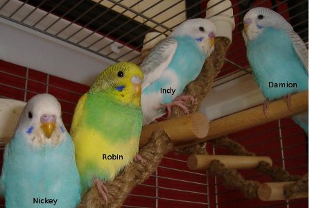 In 2008 kwam bij mij de wens weer naar boven om grasparkieten in huis te halen. De bedoeling was om er 2 te houden, dit zouden Robin en Nickey gaan zijn. Echter toen ik vanuit de kweker weer op weg ging naar huis waren er nog 2 parkietjes bij gekomen en dat werden Indy en Damion (helaas is Indy op net 2 jarige leeftijd overleden)